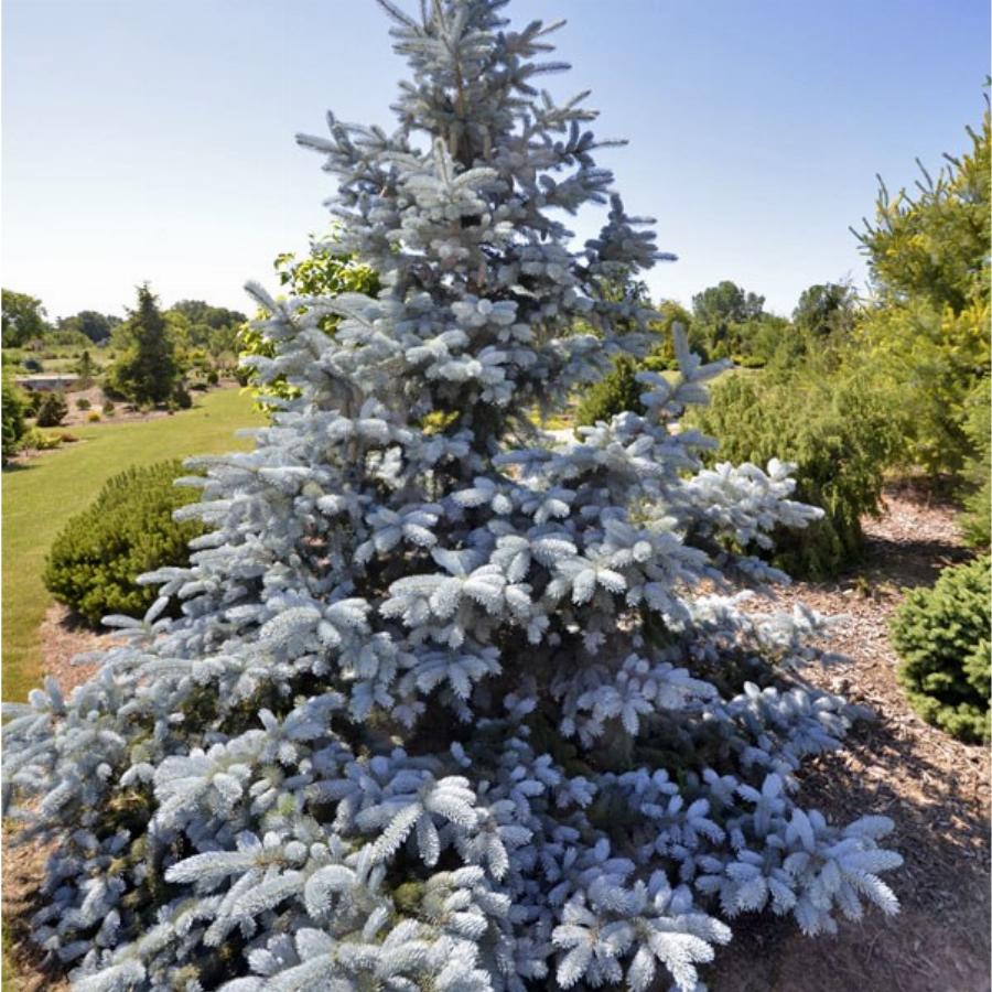Высота 8-12 м, диаметр кроны 3-3,5 м. Ежегодный прирост в высоту 20 см, в ширину 10 см. Крона очень густая. Хвоя игольчатая, жесткая, острая, серебристо-голубая длиной 2-3 см. Шишки светло-коричневые длиной 6-10 см. К почвам нетребовательна. Используется как ординар, рождественское дерево, в группах.