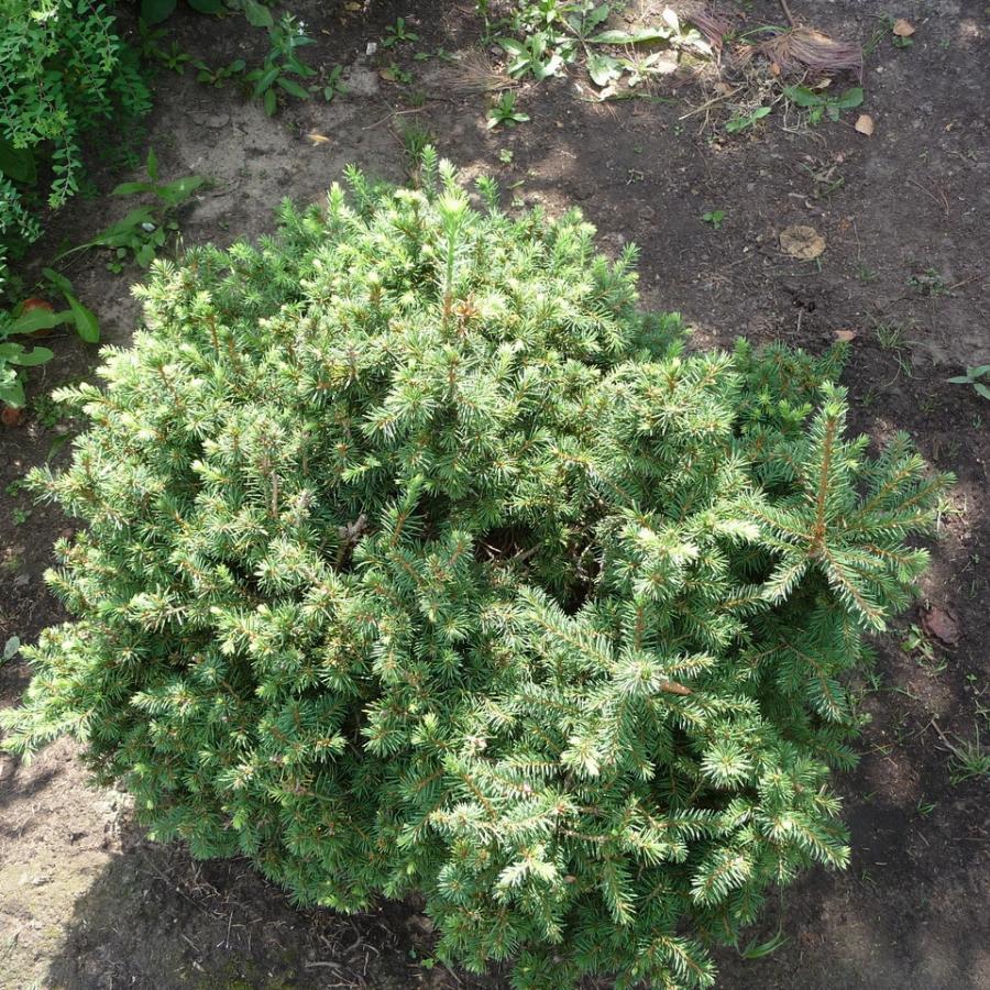 Высота 1 м, диаметр кроны 2 м. Ежегодный прирост в высоту 5 см, в ширину 10 см. Крона густая. Хвоя игольчатая, жесткая, острая, желтовато-зеленая. Не выносит застоя воды и сухости почвы. Используется как ординар, в группах, альпинариях.