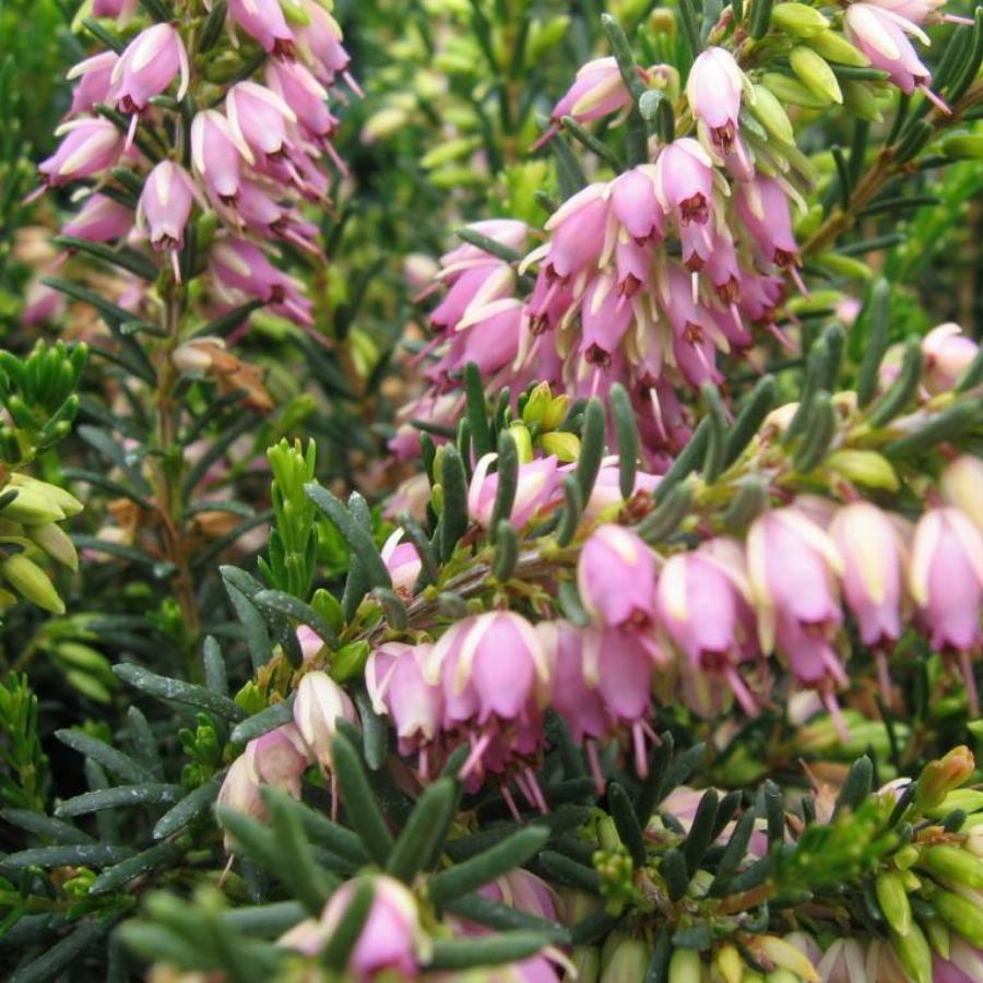 Вечнозеленый кустарник высотой до 40 см, диаметр кроны такой же. Крона шаровидная. Кора светло-коричневая. Листья летом темно-зеленые, осенью — темно-серо-зеленые, линейные, 4-8 мм длиной. Цветет в Европе с середины января до конца мая, в Москве — в мае, цветки многочисленные, светло-лилово-розовые. Плоды не вызревают. Побеги растут вверх, широко. Годичный прирост 8 — 10 см. Светолюбив. Почвы предпочитает легкие, влажные, слабокислые, маломощные.