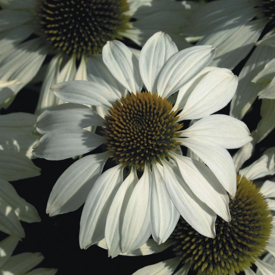 Красивоцветущее. Высота 0,6-1 м. Цветки белые с коричневой серединкой. Цветение июль-сентябрь. Светолюбива.Эхинацея предпочитает некислые, увлажненные садовые почвы, отзывчива на минеральные удобрения. Цветущая эхинацея привлекает большое количество бабочек и пчел, является лекарственным растением, повышающим иммунитет.