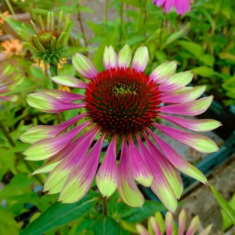 Цветки крупные до 15 см. Стебли высокие до 100 см, крепкие, не ложатся. Лепестки лаймово-зеленые, к центру становятся брусничными. Центральный конус от зеленого до темно-коричневого.