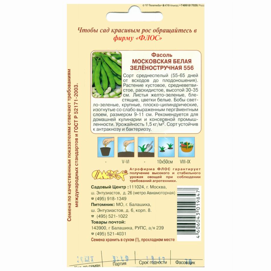 ФАСОЛЬ МОСКОВСКАЯ БЕЛАЯ ЗЕЛЕНОСТРУЧКОВАЯ 556 15 ШТ флос