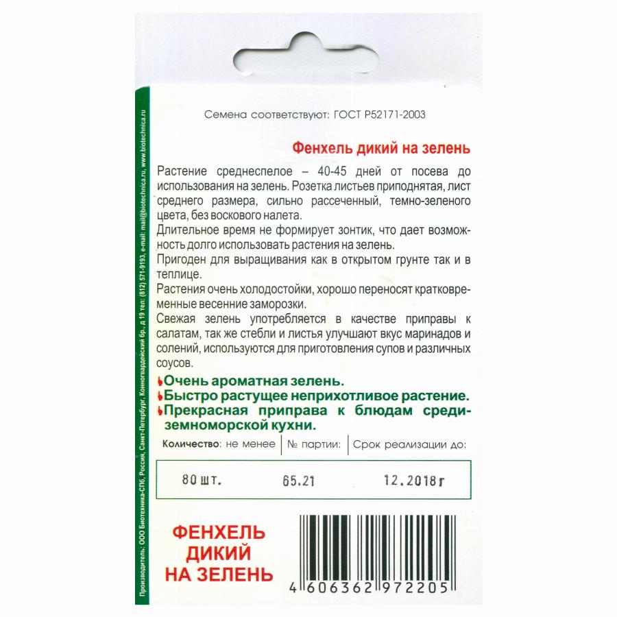 ФЕНХЕЛЬ ДИКИЙ НА ЗЕЛЕНЬ 80 ШТ биотехника