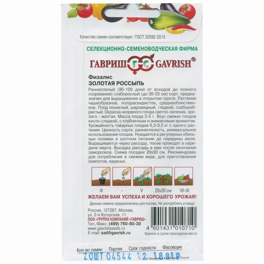 ФИЗАЛИС ЗОЛОТАЯ РОССЫПЬ 20 ШТ гавриш