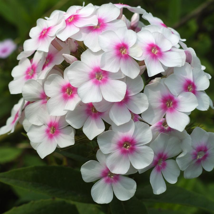Высота куста 75 см. Размер цветка 3,5 см. Цветение — с начала августа. Цвет: белый со светло-карминовым колечком. Соцветие округлое, большое, плотное, красиво сложенное. Куст мощный. Сорт зимостоек. Яркий сорт, который украсит любой сад.