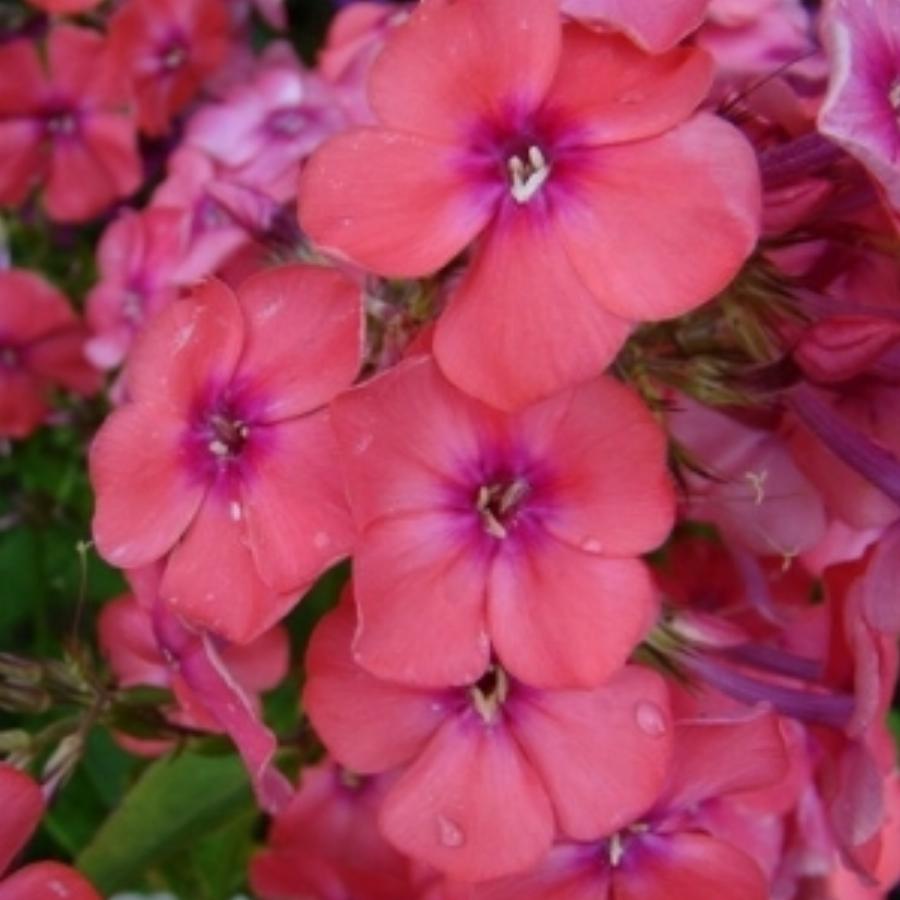 Ярко-розовый с оранжевым оттенком. Соцветие округло-коническое, плотное. Куст прочный. Высота растения 90см, диаметр цветка 3,8 см.