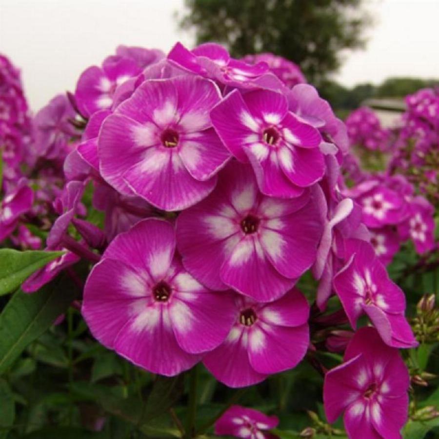 Высота растения 0,8 м, цветок фиолетово-пурпурный с белым центром, соцветие плотное, куст прочный, прямостоячий. Цветение июль-август.
