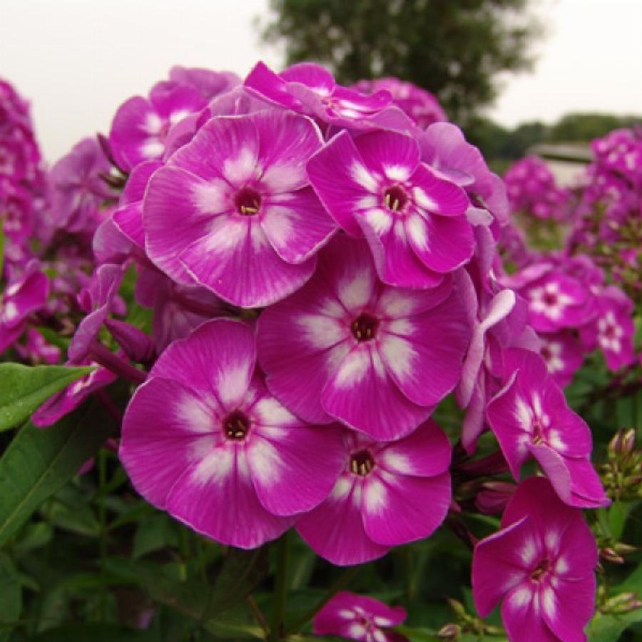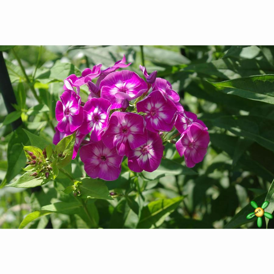 Высота растения 0,8 м, цветок фиолетово-пурпурный с белым центром, соцветие плотное, куст прочный, прямостоячий. Цветение июль-август.