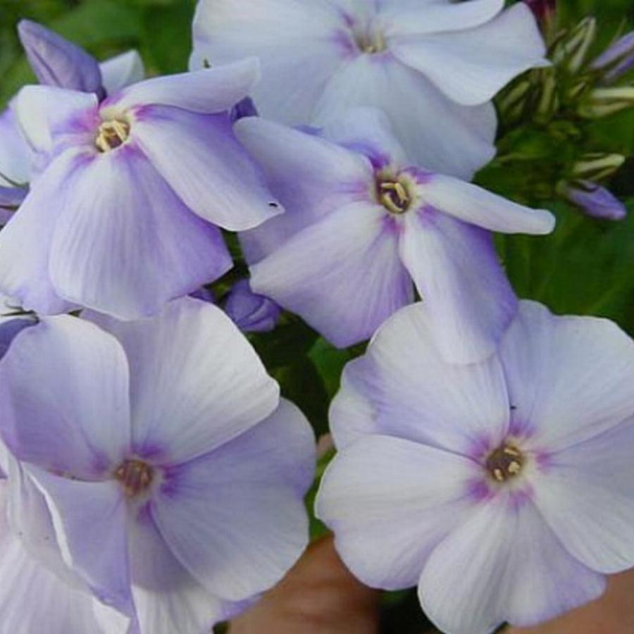 Очень нежный флокс, красивый, бледно-сиреневый с еле выраженным малиновым глазком, цветок диаметром 4,5см. Высота растения 1,5 м.