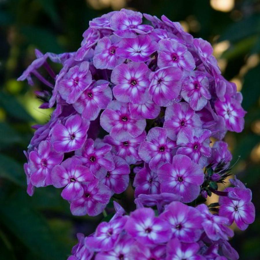 В начале цветения сиренево-пурпурный, а затем по краю лепестков широкой полосой проступает серовато-коричневатая дымка и большая белая звезда. Диаметр цветка 3,4-3,6 см, соцветие плотное, овально-коническое. Сильный, хорошо разрастающийся и зимующий сорт. Высота куста 90 см. Средне-позднего срока цветения.