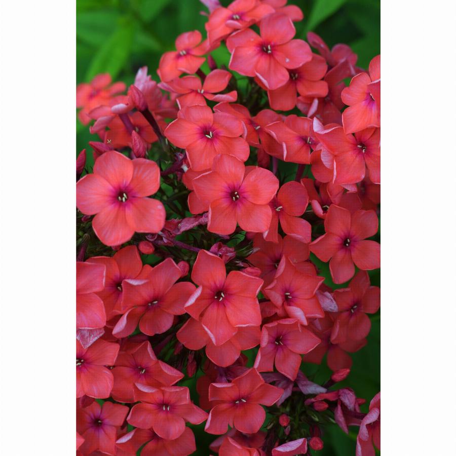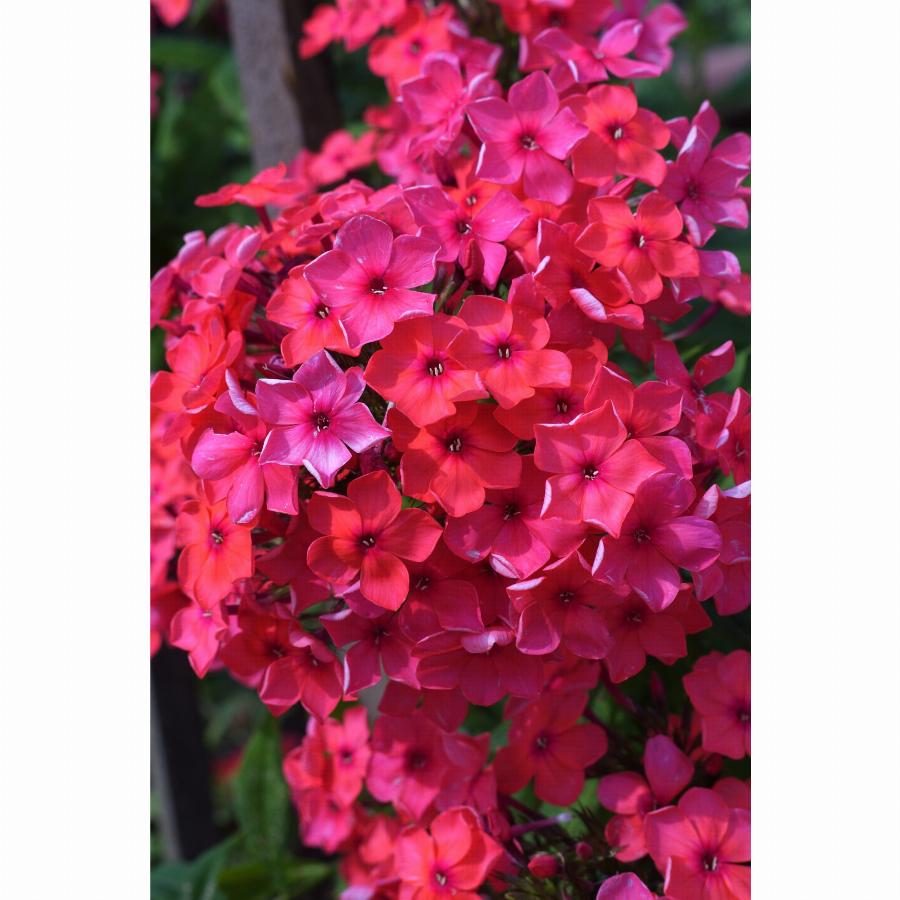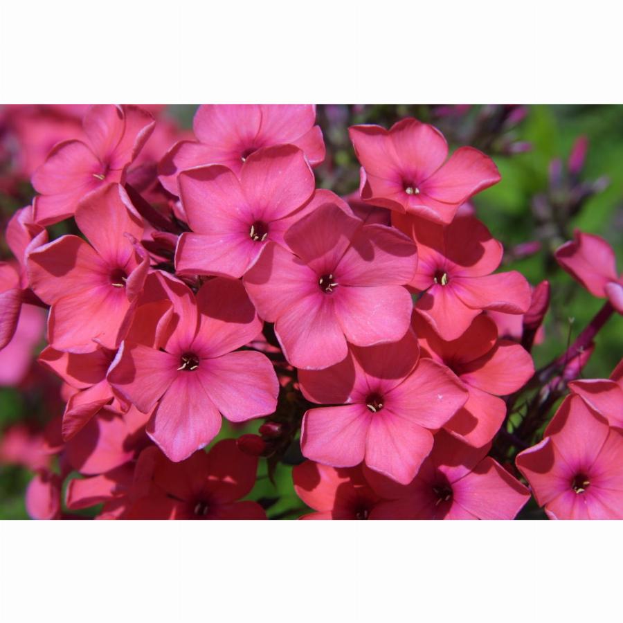 Высота куста до 120 см. Цветки красно-розовые, в центре яркое малиновое кольцо; ,диаметр цветка до 3,5 см..Цветет обильно и продолжительно в конце сезона одним из последних, когда большинство многолетних флоксов уже отцвели.