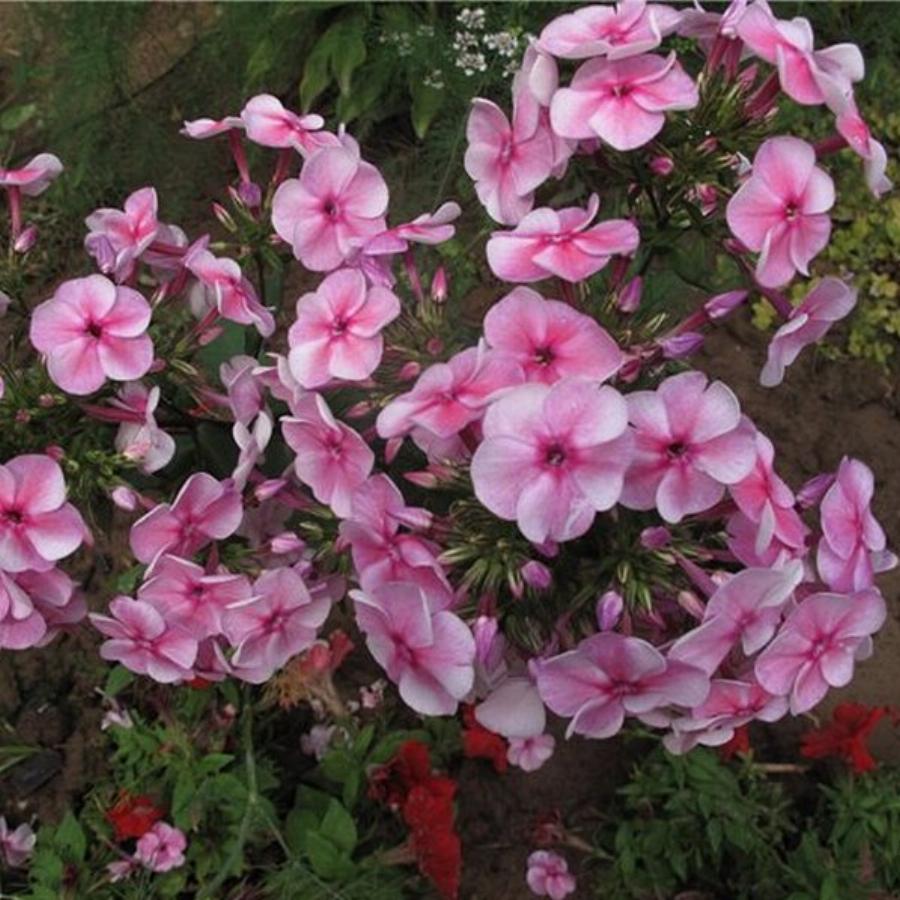Лепестки цветка белые с розовым налётом, быстро выгорают на солнце до чисто белого с розовато-сиреневой звездой в горле. Диаметр цветка — 2.5-3 см. Соцветие шаровидное, плотное. Куст раскидистый высотой 0,6-0,7 м. Цветет в июле.