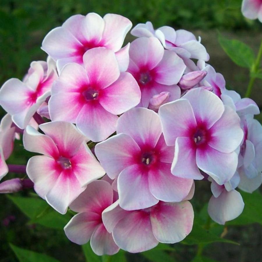 Белый с карминовым центром и размытыми карминовыми мазками от центра венчика. Размер цветкам 3,8. Соцветие округло-коническое, средней плотности, куст мощный ,высота 70 см, среднеранний . Очень нарядный!