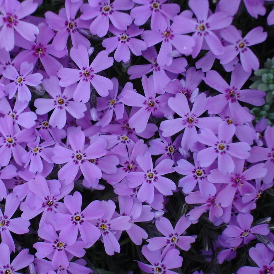 Высота растения около 15 — 17 см. Образует вечнозеленые плотные коврики. Лежачие стебли с очень короткими междоузлиями сплошь покрыты тесно сидящими мелкими, узкими, острыми и жесткими листьями до 2 см длиной. Стебли заканчиваются цветоносами, несущими один-два цветка каждый. Цветки диаметром около 25 мм, сиреневый. Цветет с середины мая до конца первой декады июня, вторично и менее обильно в августе — сентябре. Морозостоек.