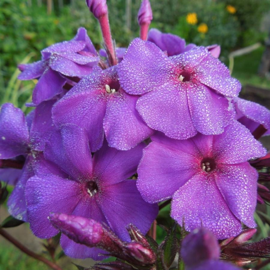 Пурпурно-лиловый, подкладка лепестков сиреневая. Соцветие большое, красивое. Очень эффектный, быстро разрастается, создает красивое пятно в саду. В срезке синеет. Диаметр цветка — 4,0 см, высота до 150 см.