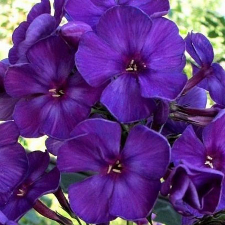 Темно-фиолетово-синий, чернильный. Самый темный из фиолетовых. Цветок колесовидный, слегка выпуклый. Соцветие округлое, небольшое, плотное. Края листьев гофрированные. Куст прочный. Высота растения 90 см, диаметр цветка 3,6 см.