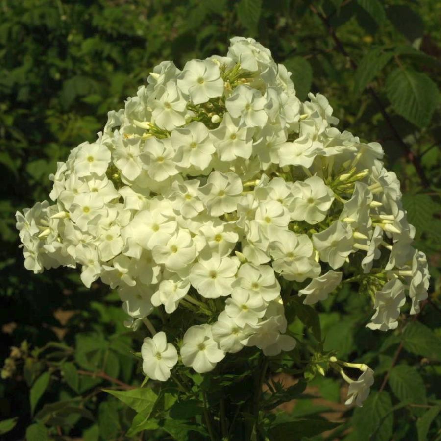 Цветки белые, соцветие плотное. высота растения 80-90 см. Диаметр цветка 2,5-3 см. Цветки распускаются не однговременно, поэтому соцветие остается декоративным долго.