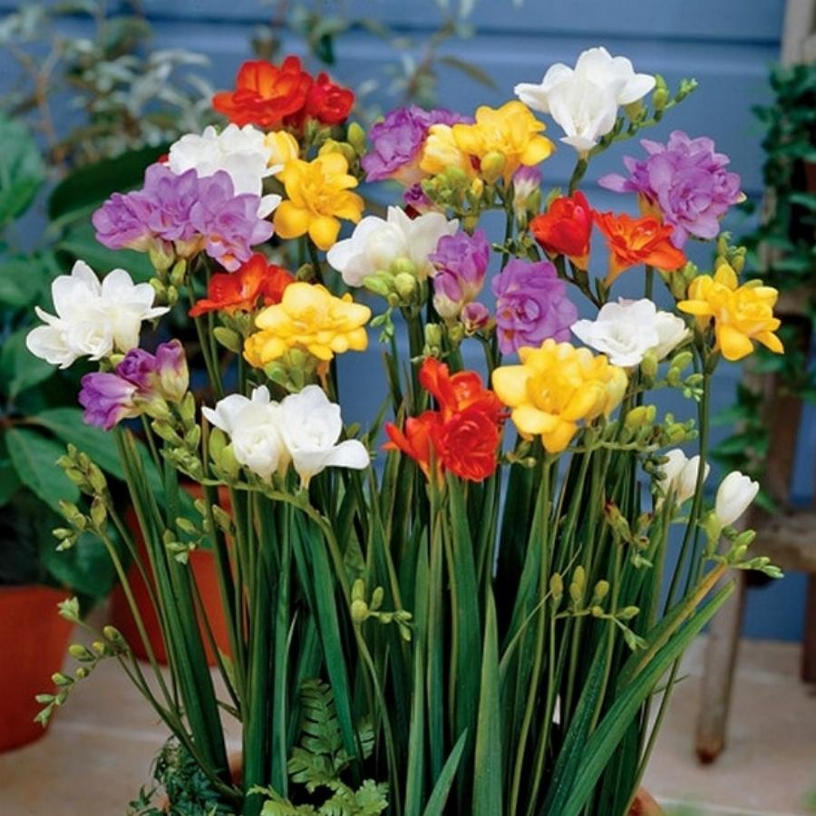 Это красивоцветущее многолетнее растение высотой 40-80 см, с линейными листьями и односторонним кистевидным соцветием, несущим около 12 душистых воронковидных цветков диаметром до 6 см. Окраска цветков фрезии может быть всех цветов радуги: белой, кремовой, жёлтой, оранжевой, розовой, красной, сиреневой, голубой, фиолетовой (часто с контрастным зевом).