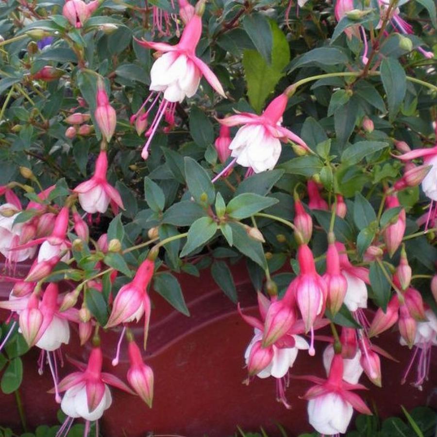 Относится к полуампельным видам. Этот сорт отличается прекрасным ветвлением и является среднерослым. Высота растения может достигать от 40 до 80 сантиметров, хотя древовидные экземпляры могут быть выше. Цветки этого сорта имеют полумахровую структуру и представлены великолепными сочетаниями разных оттенков. Период цветения начинается в июне и продолжается до октября, что делает эту фуксию одним из самых долгоцветущих видов.