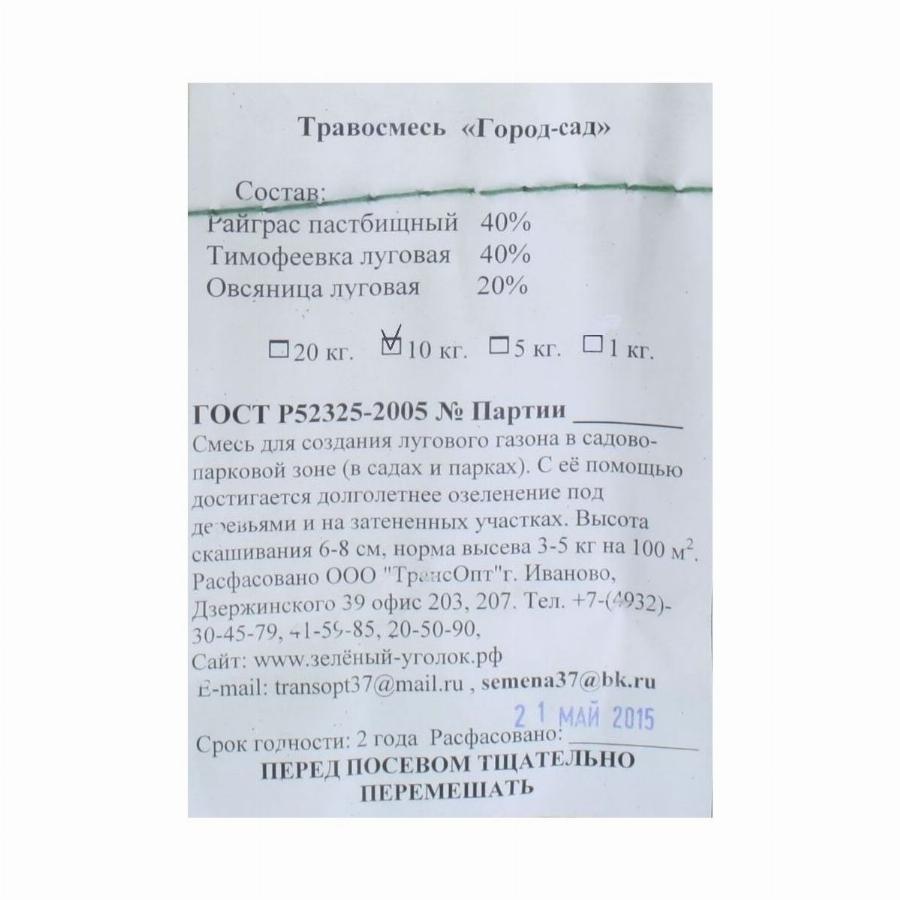 ГАЗОННАЯ СМЕСЬ ГОРОД-САД 10,0 КГ зеленый уголок форт