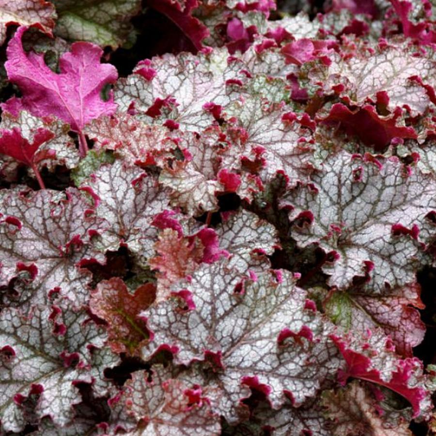 Размер 45 x 45 см — знаменитый сорт, завоевавший множество медашей в Америке и Европе, легко узнаваемый по сильно гофрированным листьям с очень приятной красно-коричневатой окраской и светлым серебристым пятнам; одна из самых любимых нами гейхер!