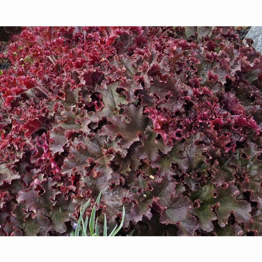 Молодые листья- красные, с возрастом приобретают бронзово-коричневый оттенок, волнистые по краю. Цветки-белые.