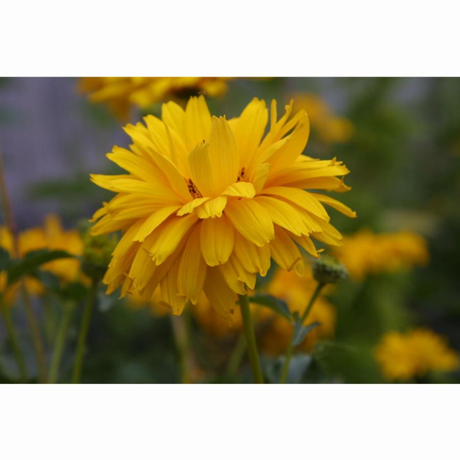Растение многолетнее, высотой до 150см. Язычковые цветки золотисто-желтые, трубчатые. Цветет в июне-июле 70-75 дней. Предпочитает сухие, солнечные места. Отличаются высокой зимостойкостью,