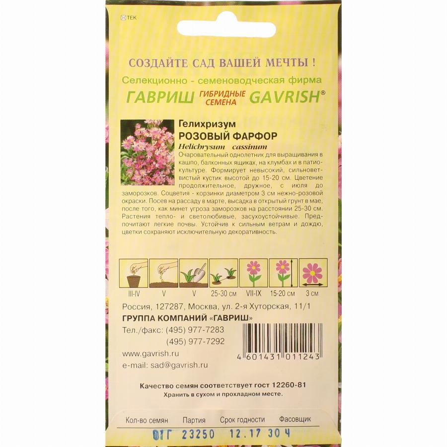 ГЕЛИХРИЗУМ РОЗОВЫЙ ФАРФОР 0,1 Г гавриш