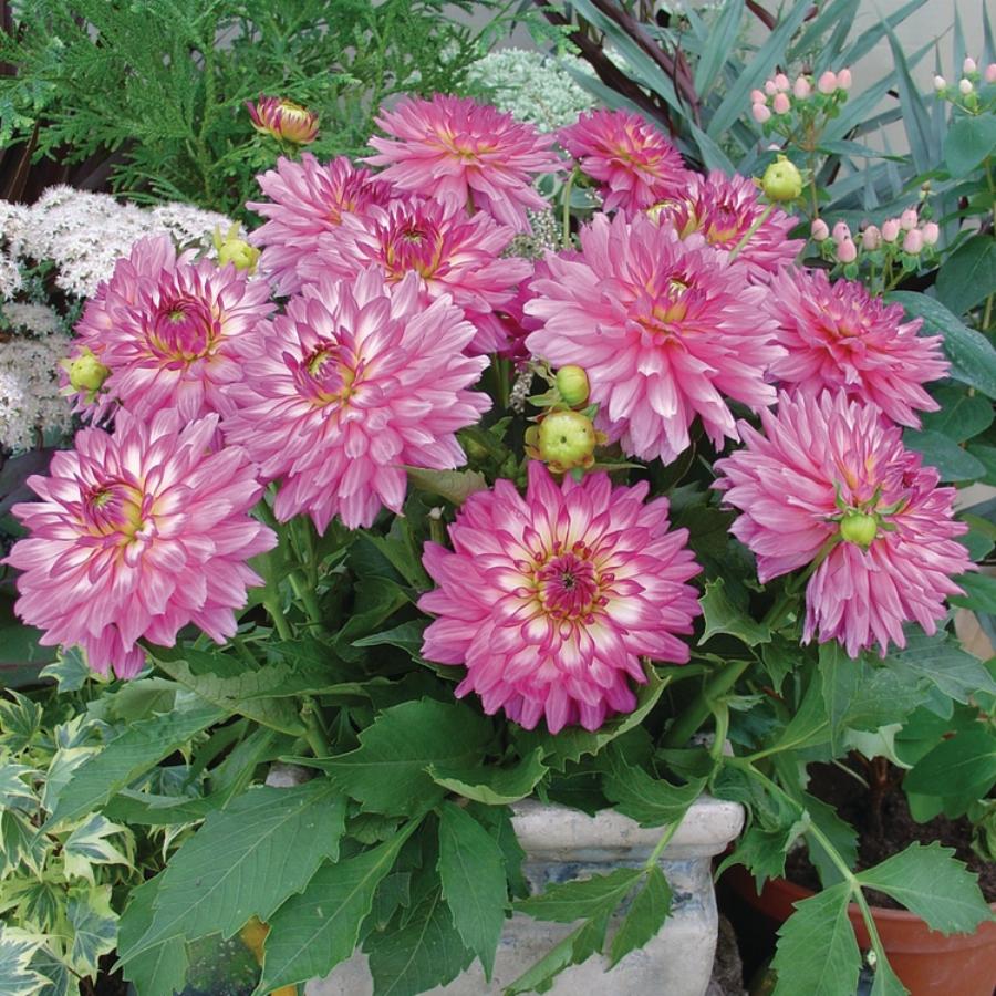 Розовый с желтоватым центром, диаметр цветка 15см, высота растения 0,35 м. Подходит для выращивания в контейнерах.