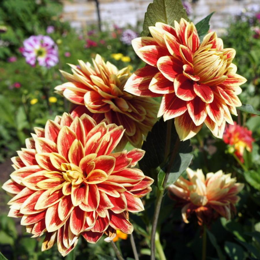 Высота растнения 100см. Период цветения июль-октябрь. Цветки в диаметре 10-15см. Яркие красные лепестки с нежно-желтыми кончиками создают крайне нарядный и праздничный вид цветку георгин Caballero. Цветет георгин шикарными густомахровыми цветками с расположенными в несколько слоев слегка заостренными лепестками.