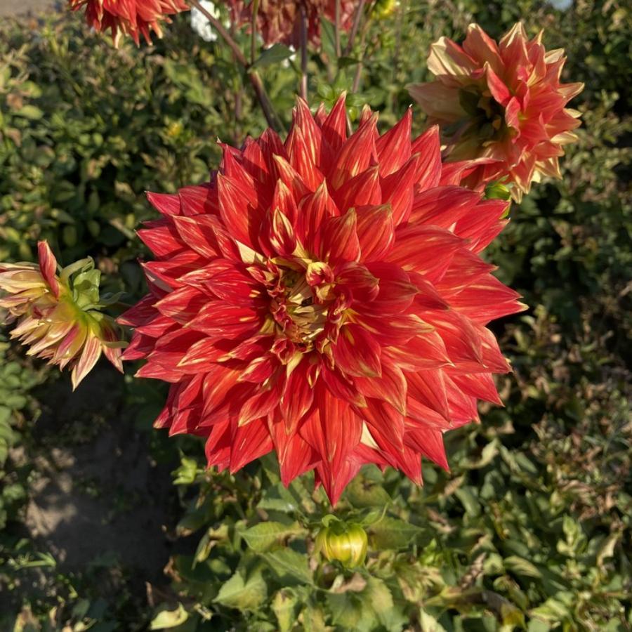 Стебель его достигает обычно длиною 0,8-1,5 м, отличается повышенной ветвистостью. Диаметр цветков 15-20см. окрас цветов желтый, оранжевый, розовый. На нем, помимо соцветий-корзинок, располагаются сравнительно крупные перистые листья. Особенная форма и оттенки цветков, смотрящихся необычайно привлекательно, превращают Тайлер Джеймс в востребованное среди ландшафтных дизайнеров или флористов. Послужит подлинным украшением любого элемента цветочного декора участка. Одинаково хорошо выглядит в цветочных массивах, рабатках и т.п.