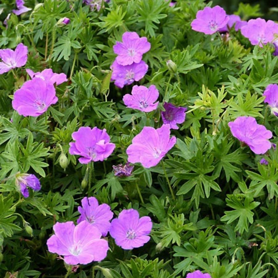 От других гераней отличается наличием длинного, мясистого, узловатого корневища, от которого отходят округлые, глубоко рассеченные на линейные дольки листья на щетинистых черешках. Листья зимующие, светло-зеленые, а осенью часть листьев приобретает ярко-красную окраску. Он высок и имеет редкую для герани сферическую форму, в высоту достигает 60 см. Стебли практически не превышают листья, и многочисленные карминно-красные цветки до 4 см в диаметре усыпают весь куст. Цветет красная герань долго и обильно, с середины июня до августа.Лучшие условия для выращивания этой герани нейтральные или слабощелочные почвы и полутень, хотя она хорошо растет и на солнечных местах. Они используются в смешанных цветниках, в качестве бордюра, являются украшением рокариев, особенно низкие сорта. Их можно выращивать в крупных контейнерах.