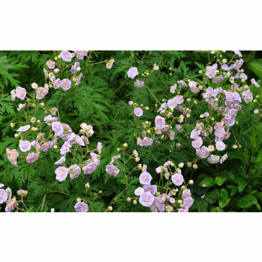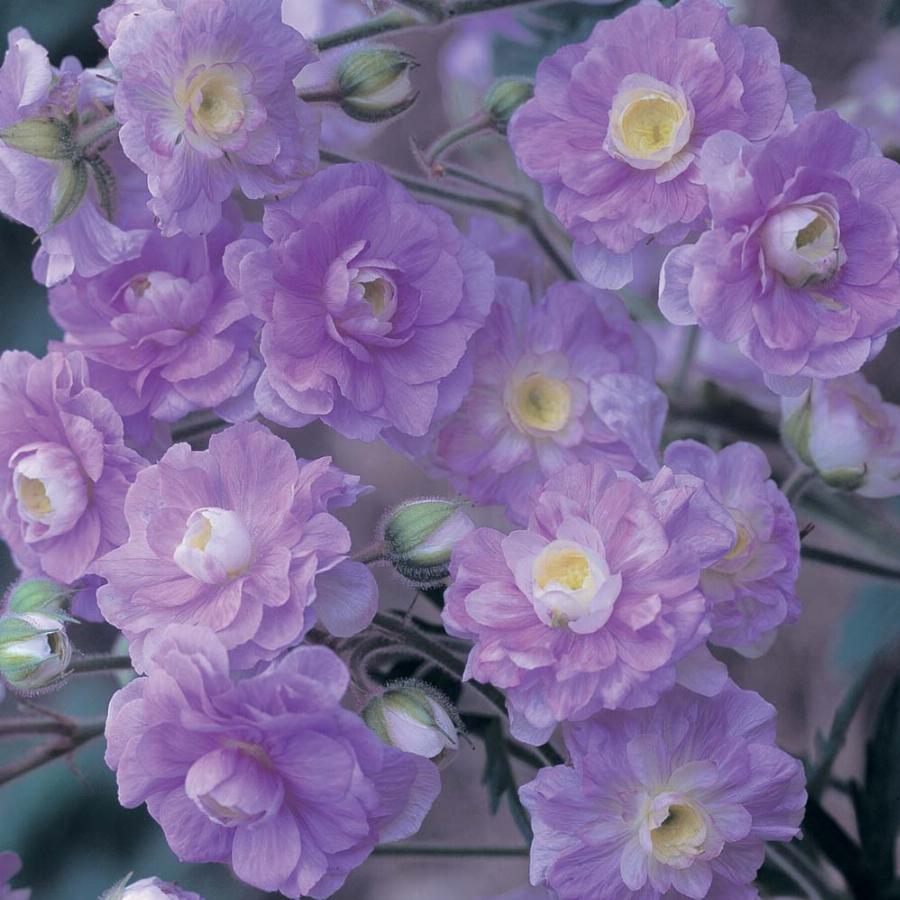 Размер 60 см. Цветение май-июнь. Зона 5 (-29 / -23 °C). Один из сортов герани луговой. Нежные махровые сиренево-розовые, c желтоватой серединой и тонкими темными прожилками, цветы покрывают куст огромным облаком. Листва разрезная, серо-зеленая. Любит солнце. В теплое лето цветение может продолжаться весь сезон. Второе название ‘Gernic’.