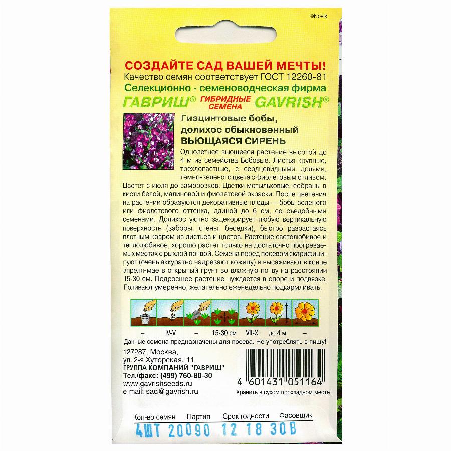 ГИАЦИНТОВЫЕ БОБЫ ВЬЮЩАЯСЯ СИРЕНЬ 4 ШТ гавриш