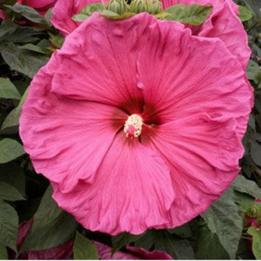Очень красивые крупные цветки пастельно-розовой окраски с темно-красным центром. Цветение обильное и продолжительное. Это листопадный кустарник, в природе достигает 3 м в высоту и ширину. Цветки, величиной 6–10 см, очень похожи на цветки мальвы – шелковистые, часто с темным пятном у основания лепестков, с белым, мучнистым на вид «початком» в середине. Это растение на удивление морозостойко – переносит морозы до 29°C (нуждается в укрытии, как виноград или клематис).