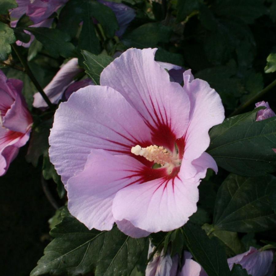 Это листопадный кустарник высотой до 3 м. Молодые побеги мягко опушенные, а зрелые — гладкие, листья овально-ромбические, трехлопастные, цветы розовые с вишневым центром, крупные. Гибискус растет довольно медленно, цветет и плодоносит с 3-4 лет. Светолюбив, предпочитает свежую, суглинистую, умеренно увлажненную почву, плохо переносит известковый субстрат. Без повреждений выдерживает кратковременные понижения температуры до минус 22° С.