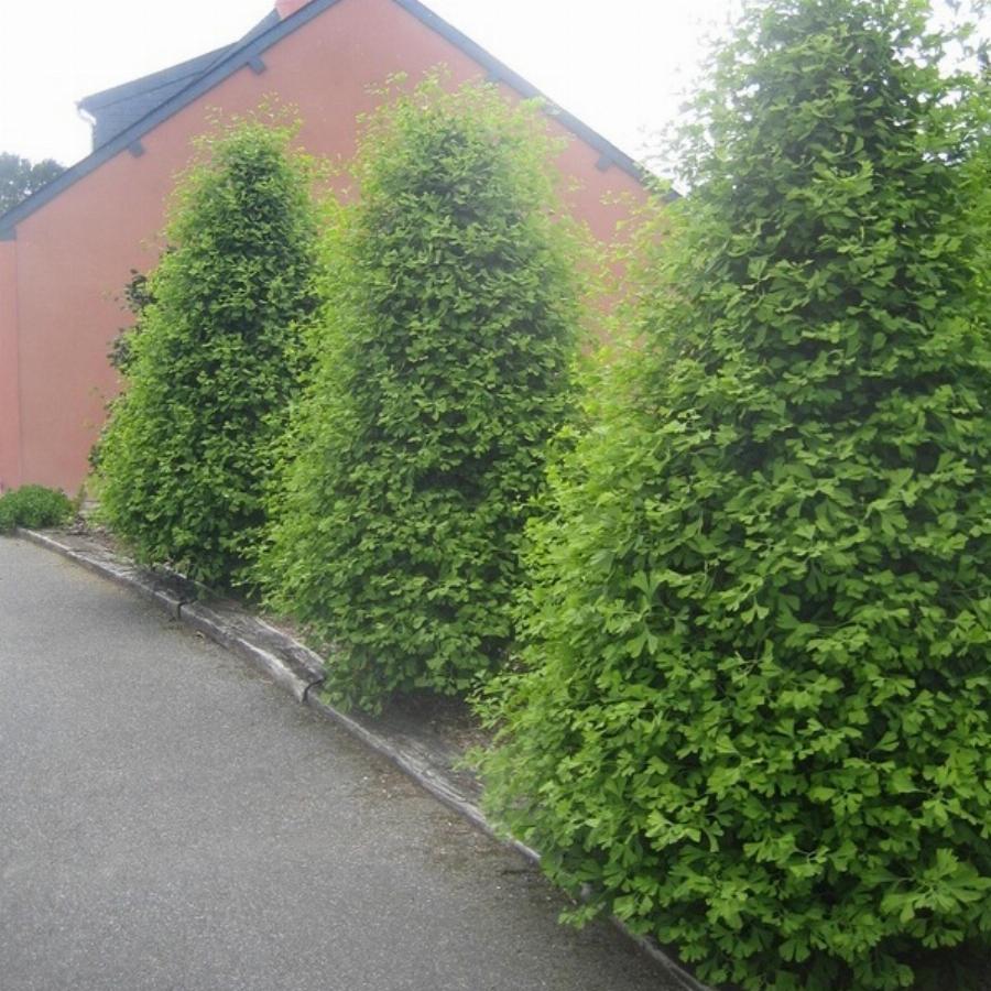 Крона направленна строго вверх, плотно стоящие ветви образуют узкую, конусовидную крону. Высота 15-20м. Происхождение: город Благон, Франция, 1980 год. Не плодоносит, т.к. является мужским сортом. Устойчив к загазованности воздуха. Не требователен к почвенным условиям. Листья летнезеленые, с обеих сторон гладкие, кожистые, длиной 6-10 см, распускается свеже-зеленой, осенью золотисто-желтый. Местопроизрастание солнечное или полутенистое. Неподдающееся болезням дерево, устойчивое к городскому климату.
