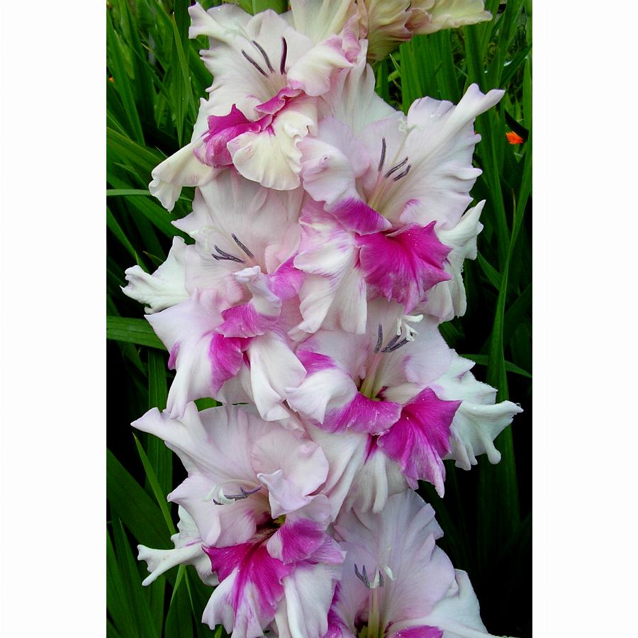 473-С-02, ДЫБОВ В Ф .Высота растения 120 см , колос очень мощный и плотный. Расцветка нежно-сиреневая с ажурным густо-сиреневым пятном на нижних лепестках, складчато-гофрированний, высотой 12-14 см.