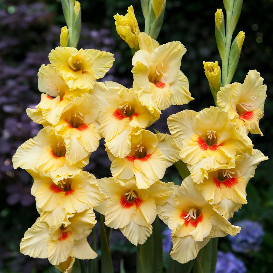 Цветок: янтарно-желтый с ягодно-красным у основания. Высота растения до — 140 см. Время цветения с июля по сентябрь.