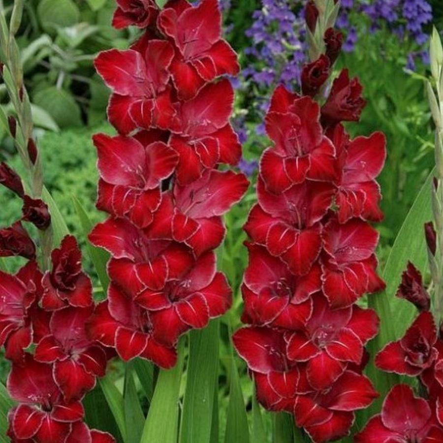 Высота растения 0,8-1,1 м, ярко-красный с белым штрихом в центре лепестка и тонкой каймой