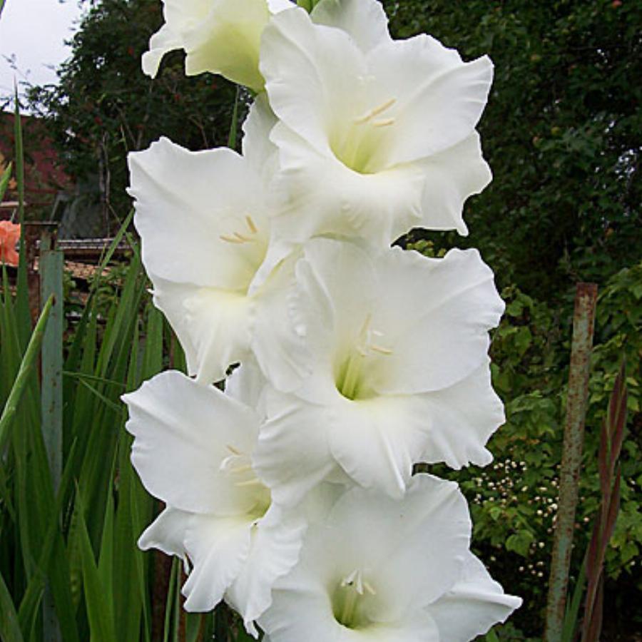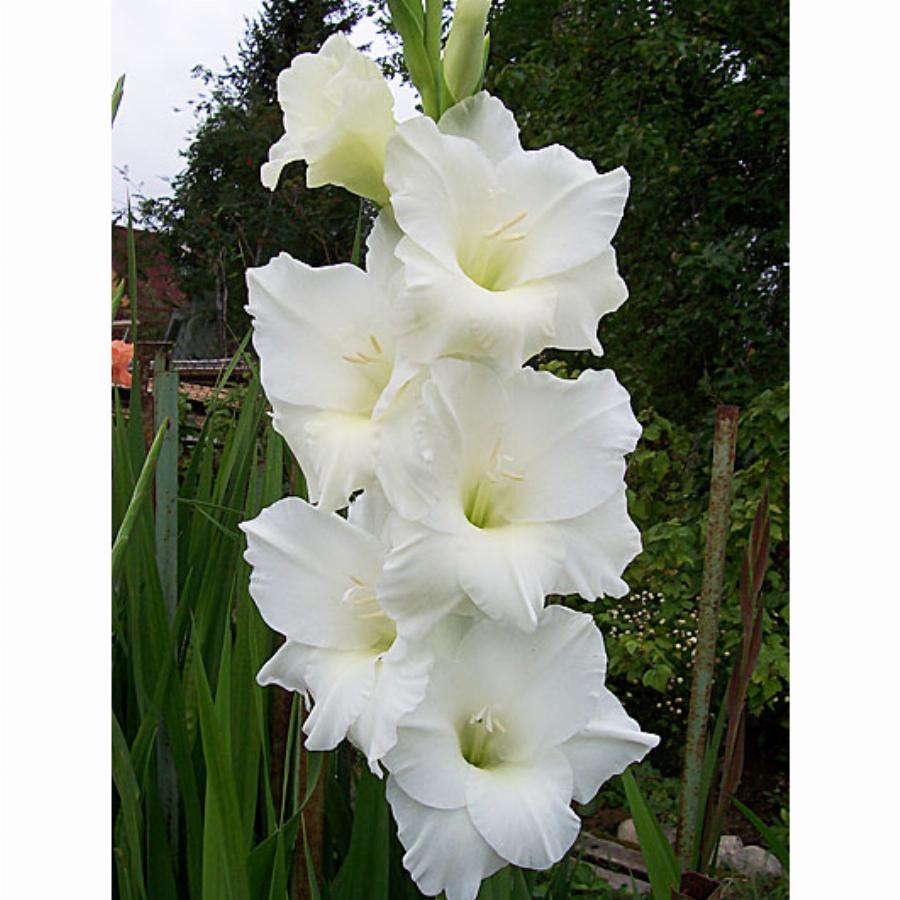 Белое очарование, высотой 100 см, цветки гофрированные! Идеально белый гладиолус — прекрасен и на клумбе, и в букетах.
