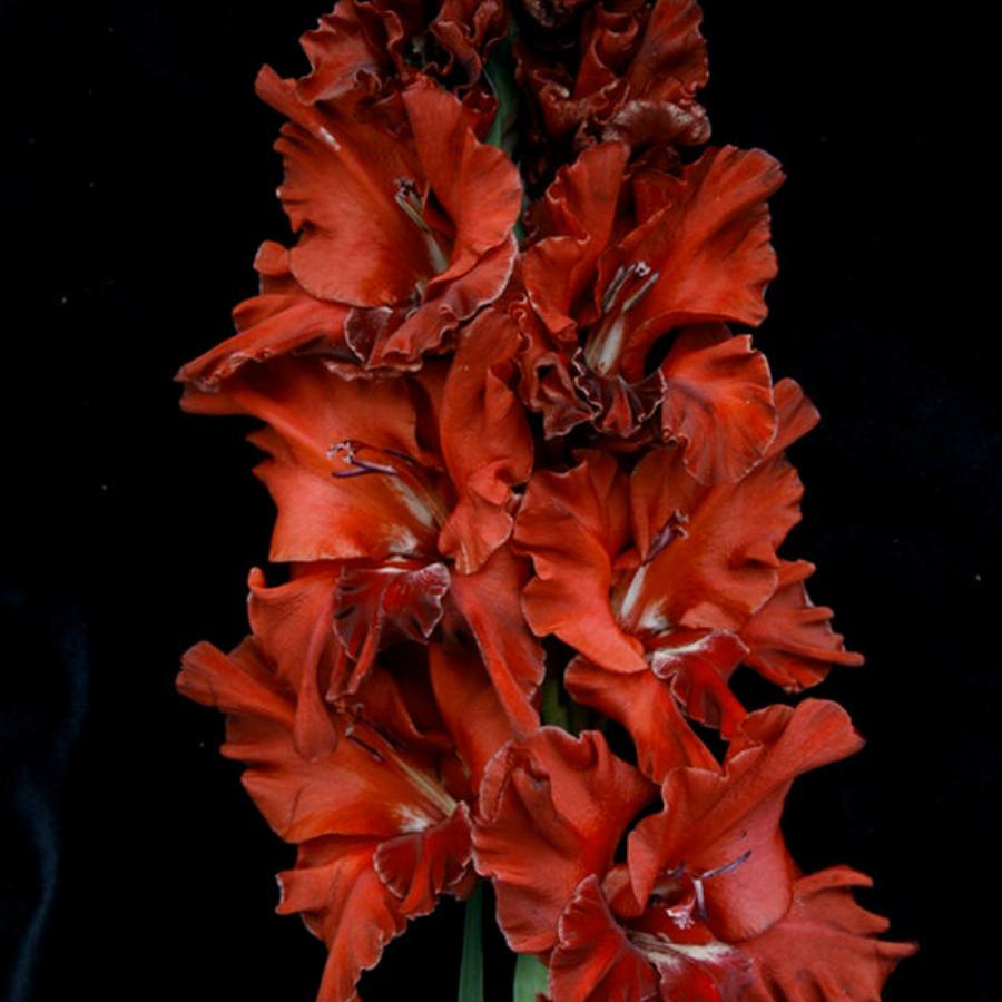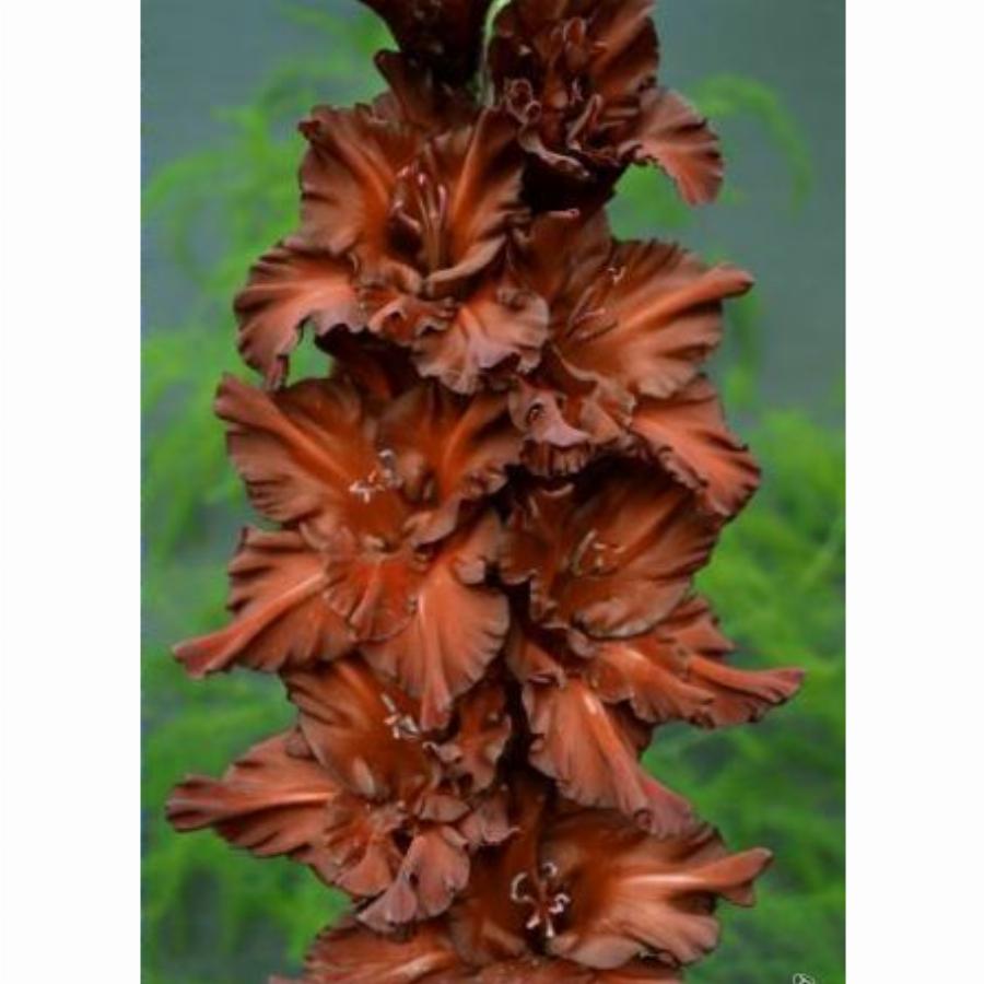 598-С-2009, Г, ДЫБОВ.Тёмно-коричневый с усилением тона к горлышку гладиолус. Ткани лепестков очень плотные, бархатные. Красиво гофрированные цветы широко открыты. Новый экзотический сорт.