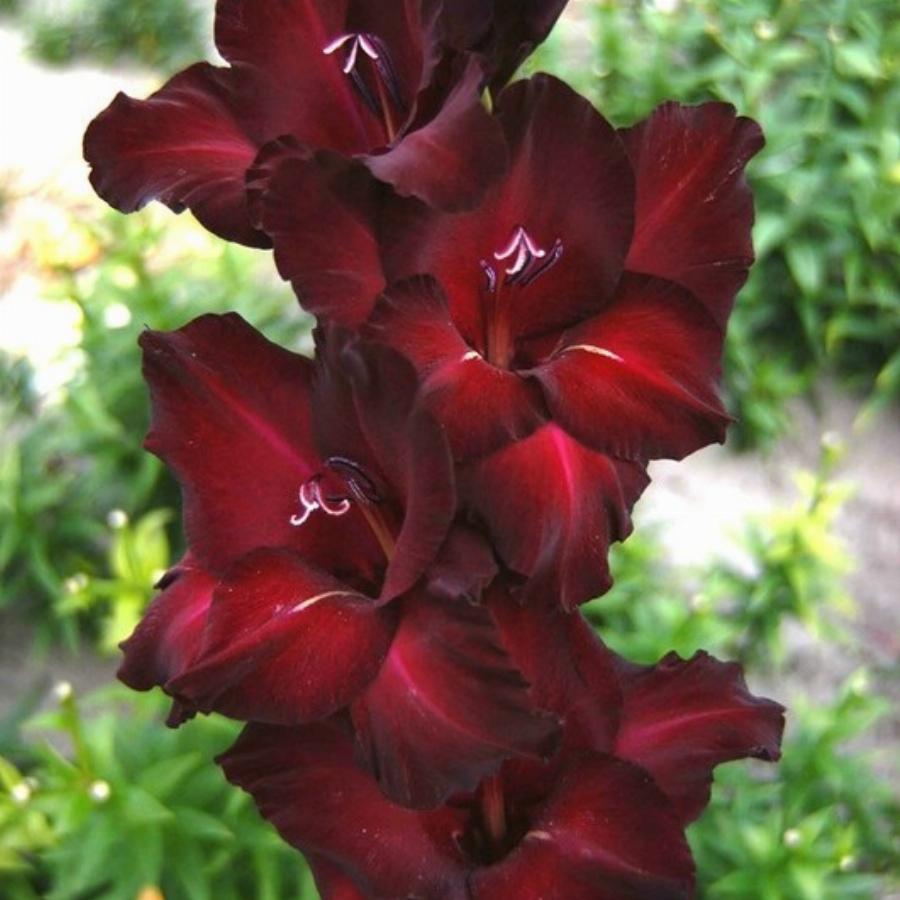 Изысканный многолетний цветок гладиолус, темно-пурпурного цветения. Бутон диаметром 6-12 см., на цветоносе длинной 1-1,5 м.
