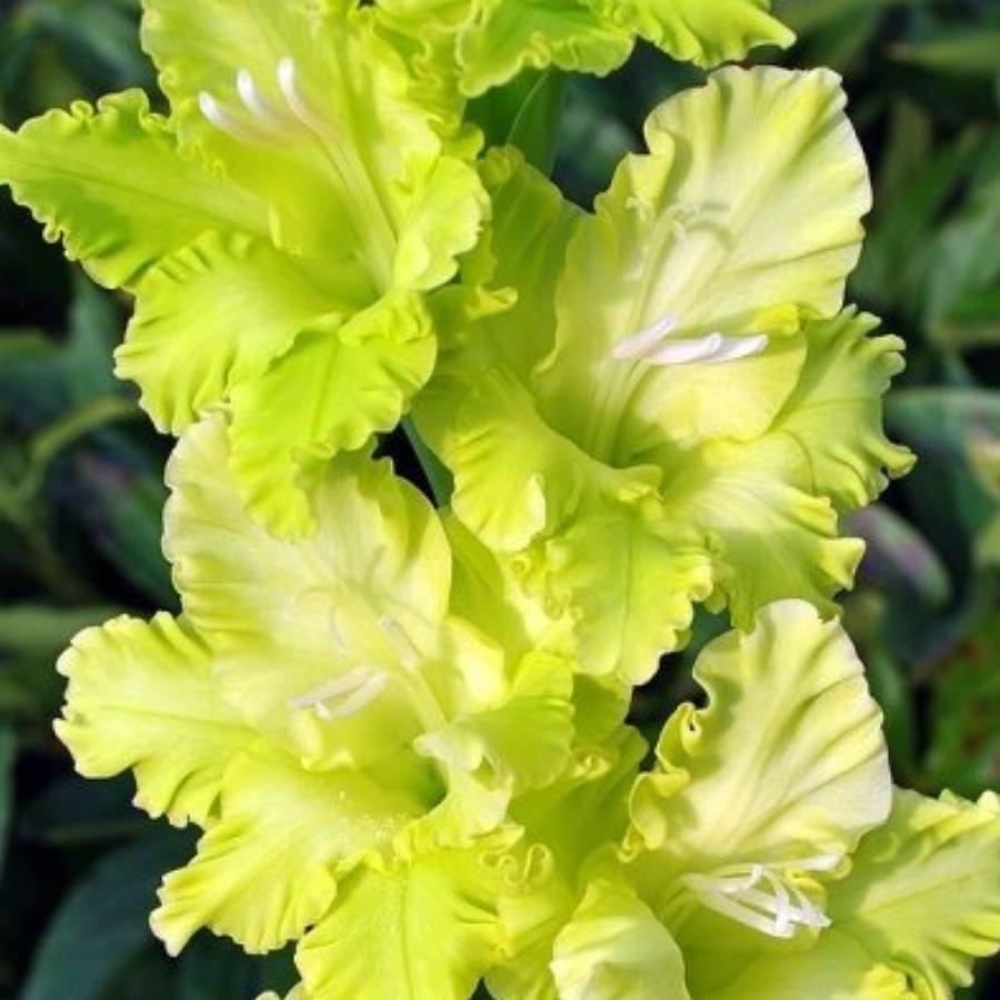 404-РС-2011, Г, 21/10 Зеленый, гофрировка мелко оборчатая по краям лепестков. Цветок плоский, широко открытый. На солнце не выгорает.