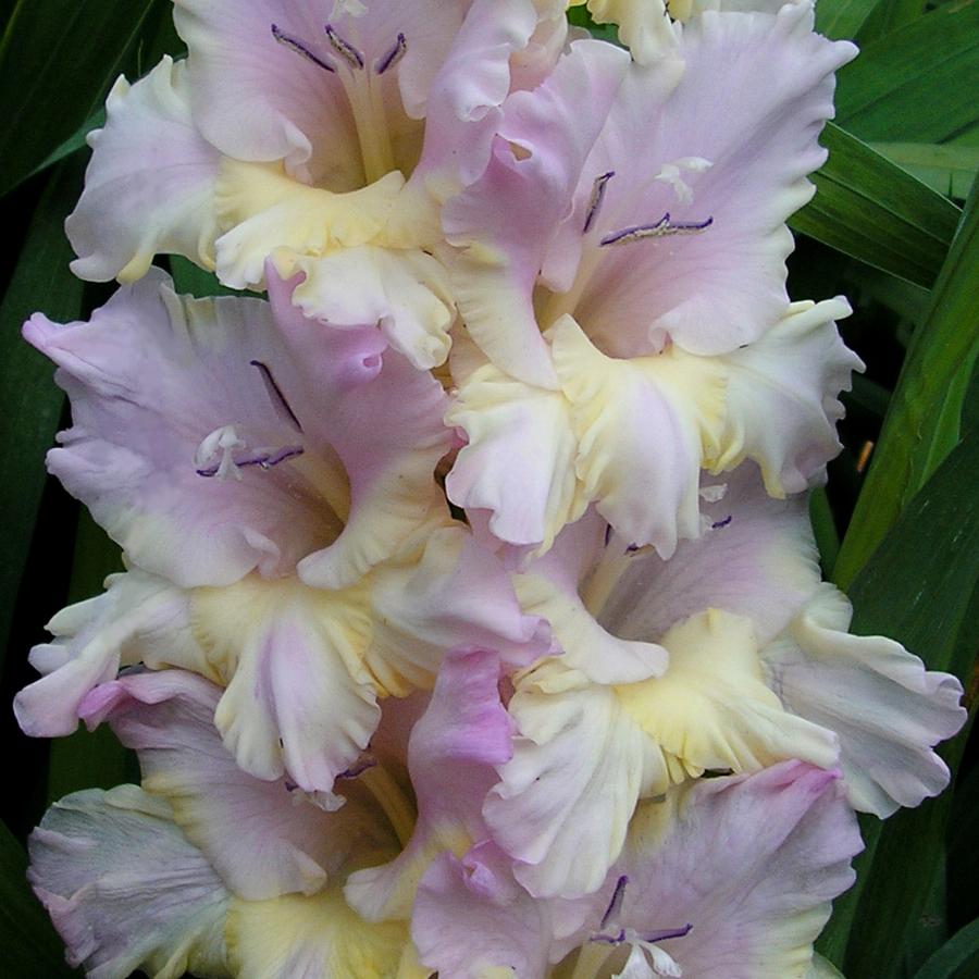 473-С-04, ОСГ, ВАСИЛЬЕВ С А. Очень нежный сиреневый гладиолус, нижние лепестки в горле бело-кремовые с сиреневым тоном.