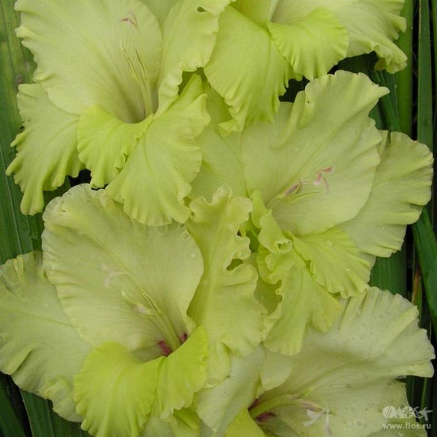 404-РС-1978 ПЛЕТЧЕР Самый зеленый в своей группе окраски. Цветки округлой формы, расположены двухрядно, классическое гофре.
