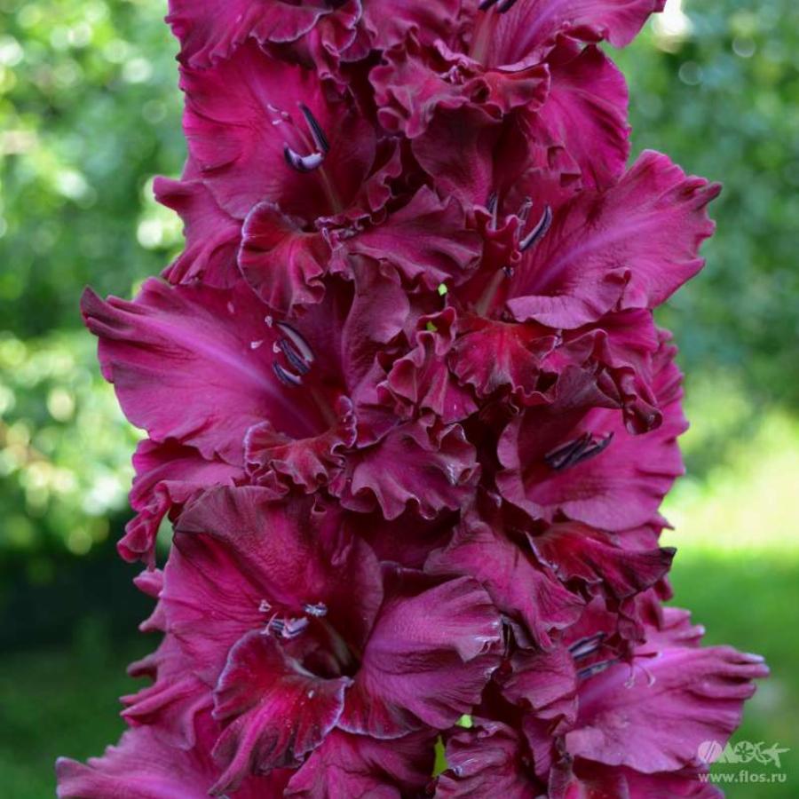 468-С-04, ВАСИЛЬЕВ Чисто-тёмно-малиновый гладиолус с фантастической гофрировкой цветов, плотно уложенных в идеально двухрядном колосе. Высота растения 150 см.