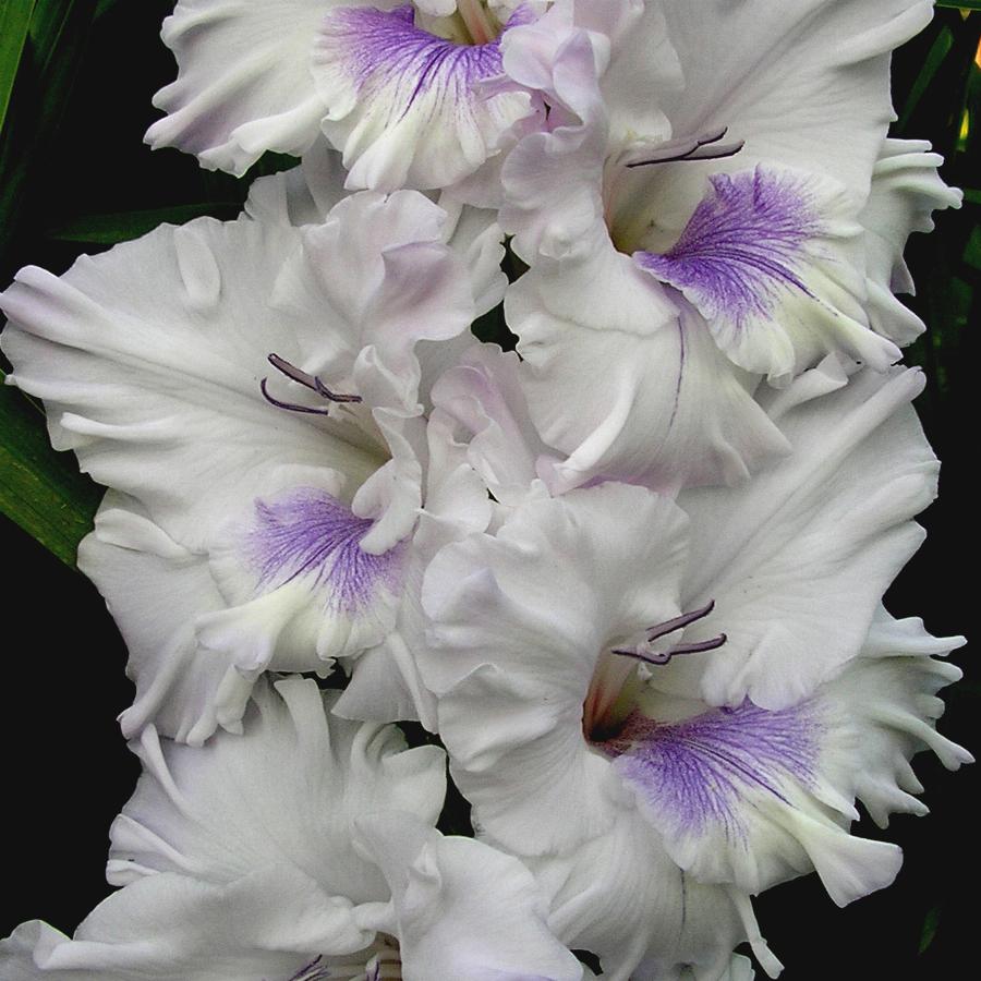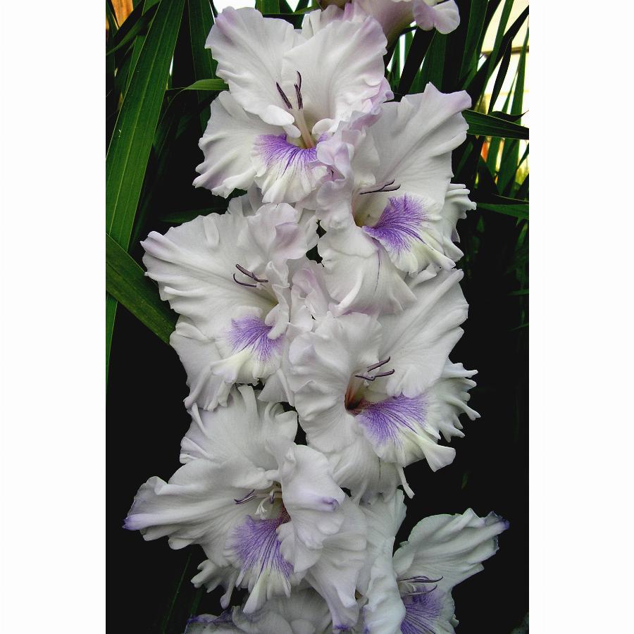 581-СР-98 ДЫБОВ В ФИсключительно нарядный голубой гладиолус с лучистым синим напылением на нижнем лепестке. Растение высотой 165 см. Листья темно-зеленые. Цветонос прочный, прямой.