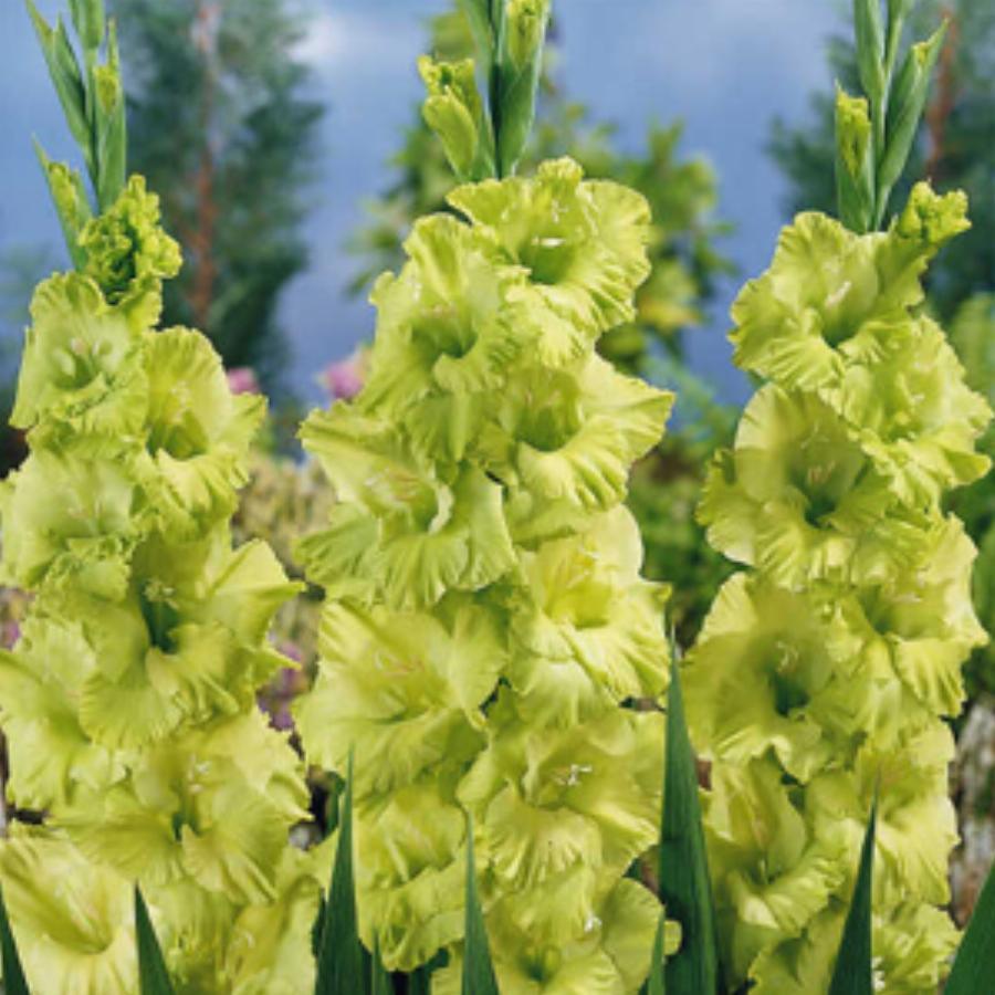 Высота растения 100 см., очаровательный сорт со слегка гофрированными цветками ярко-зеленой окраски.