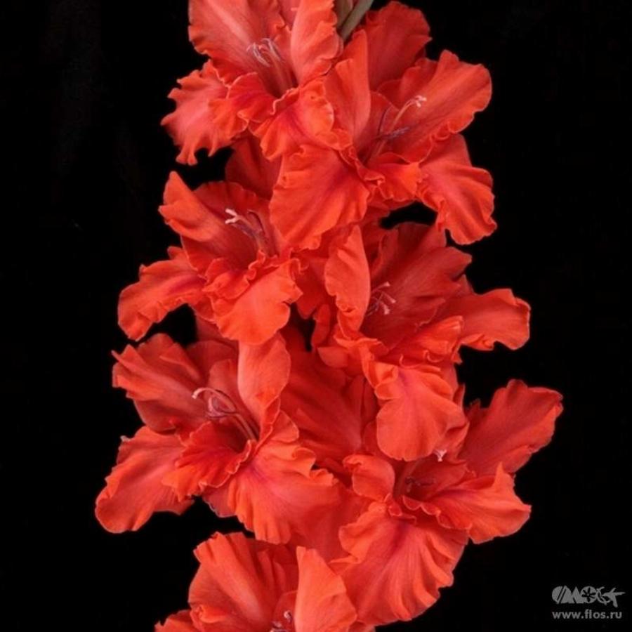 (554, с, Трифанов) Ярко-красный с крупными плотной фактуры цветками. Высокий – 160 см. Отличная срезка.